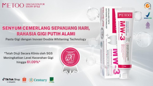 METOO hadir dengan produk pasta gigi pemutih METOO MW-3 Advanced Whitening Toothpaste untuk rahasia gigi putih percaya diri setiap hari METOO MW-3 Advanced Whitening Toothpaste diformulasikan khusus untuk menaikkan tone warna putih alami gigi hanya dalam 7 hari pemakaian. “Pasta gigi ini cocok untuk Anda yang ingin mengatasi gigi kuning akibat konsumsi kopi, teh, atau minuman bersoda, serta kebiasaan merokok, jawaban untuk senyum cemerlang sepanjang hari, rahasia gigi putih alami”, Ungkap Aiko.