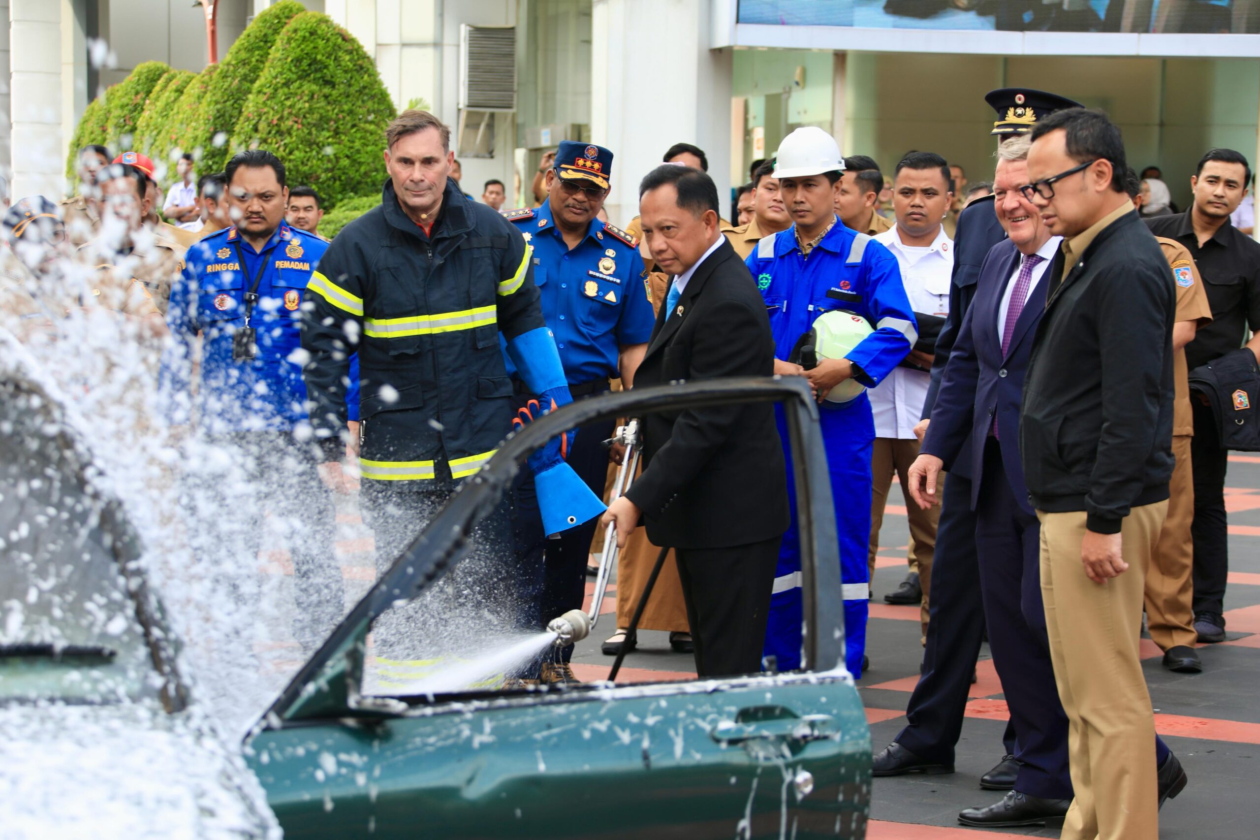 Dalam waktu kurang dari 10 menit, api yang didemonstrasikan membakar sebuah mobil berhasil dipadamkan. “Kita lihat ini teknologi yang bagus dan kita mau bekerja sama dengan perusahaan Denmark,” jelasnya.