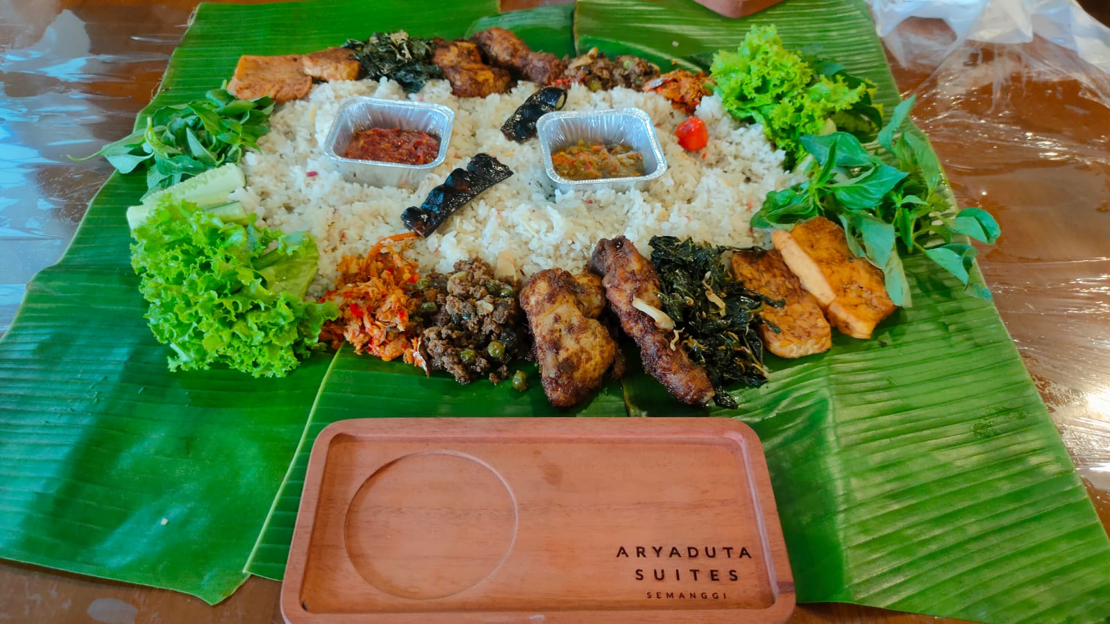 Menurut Dina Servita, Marketing Communication Manager Aryaduta Suites Semanggi, hotel tersebut menghadirkan hidangan khas nasi liwet bancakan, lengkap dengan ayam goreng, tahu, tempe, oncom dicampur lenca, aneka lalapan, sambal, dan lauk pauk lainnya. Semua disajikan secara tradisional di atas daun pisang yang digelar di atas meja panjang. “Kami menyebutnya bancakan, sebuah tradisi makan bersama yang merekatkan kebersamaan,” ujar Dina.